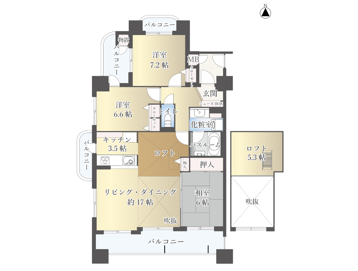 ◆LDK 約20.5帖+ロフト+吹抜け天井と、マンションとは思えない開放感あふれるゆとりの住まいをぜひ実際にご体感ください。